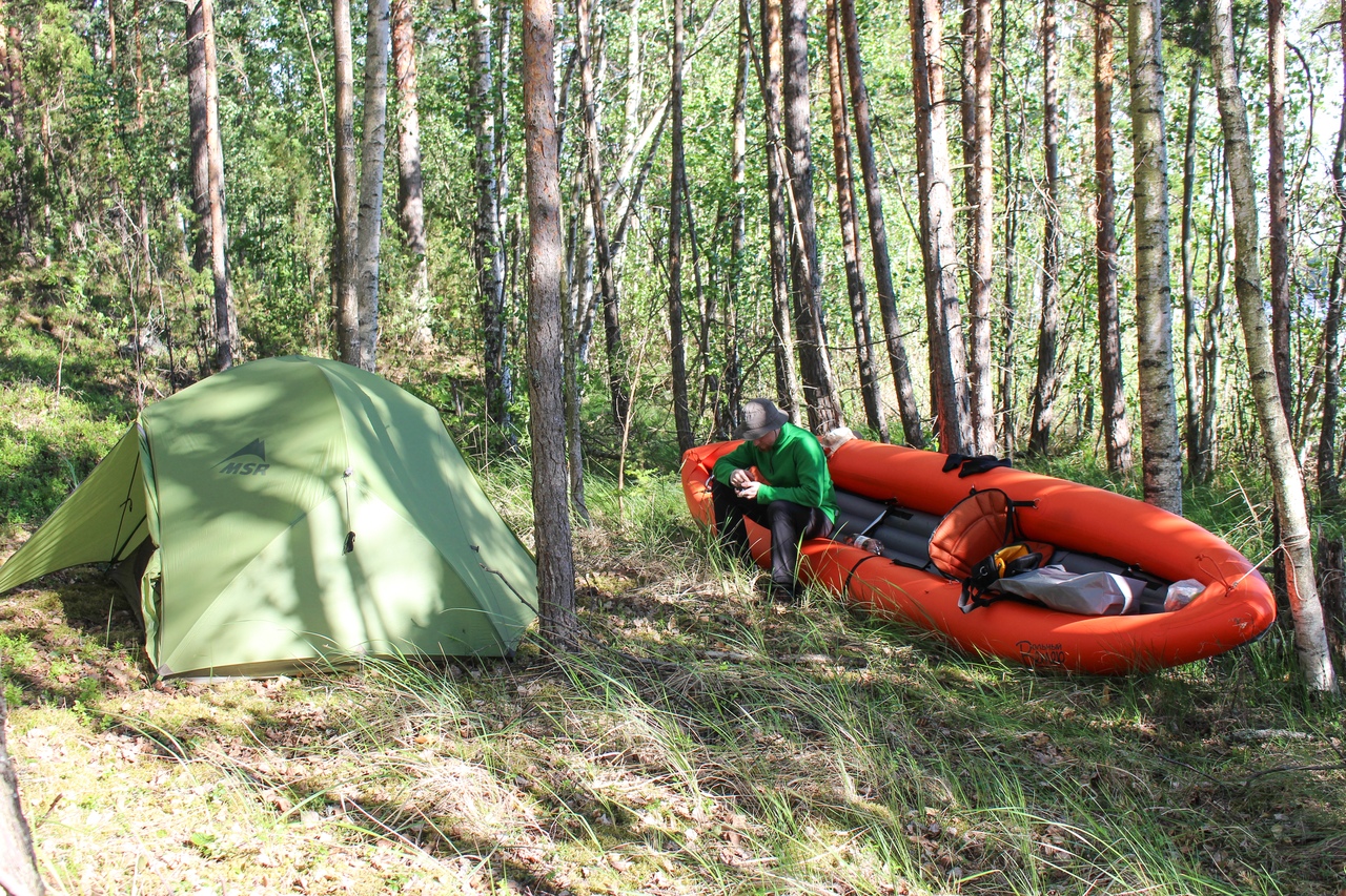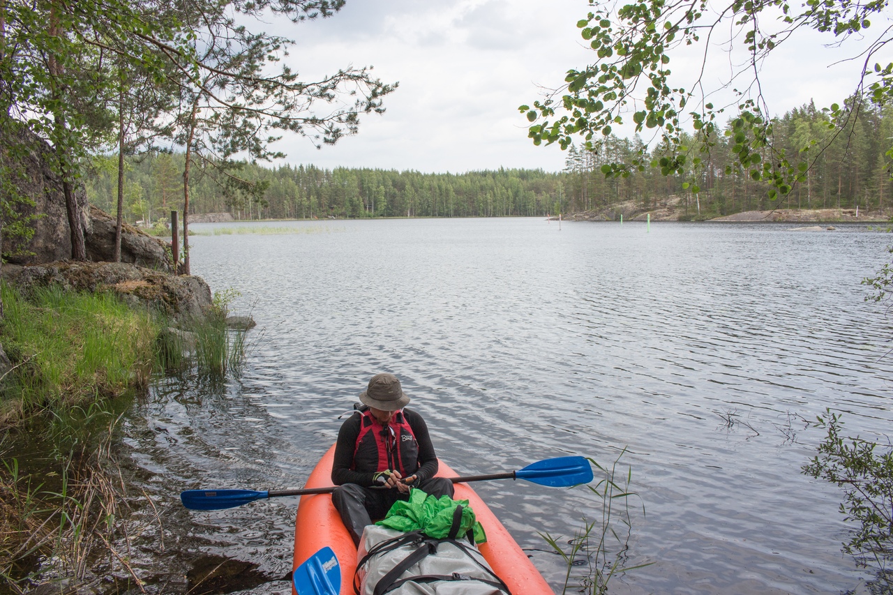 Утром нас разбудили каякеры – активная бабулька с двумя подростками. Погода к этому времени уже наладилась, мы начали потихоньку собираться, и после старта взяли курс на магазин.