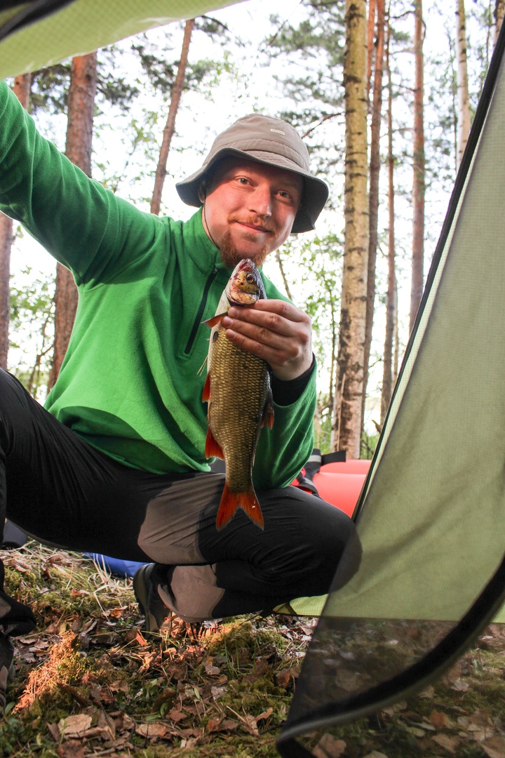 Мог бы вообще ничего не поймать. Проснулся рано, спать больше не хотелось, пошёл побросать спиннинг. После нескольких десятков безрезультатных забросов уже решил было сворачиваться. Язь клюнул в двух метрах от берега, когда я уже собирался вынимать блесну и складывать спиннинг.