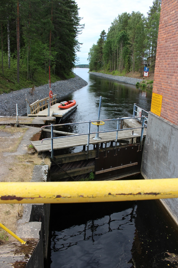 нам на пути встретился шлюз у небольшой частной гидроэлектростанции.