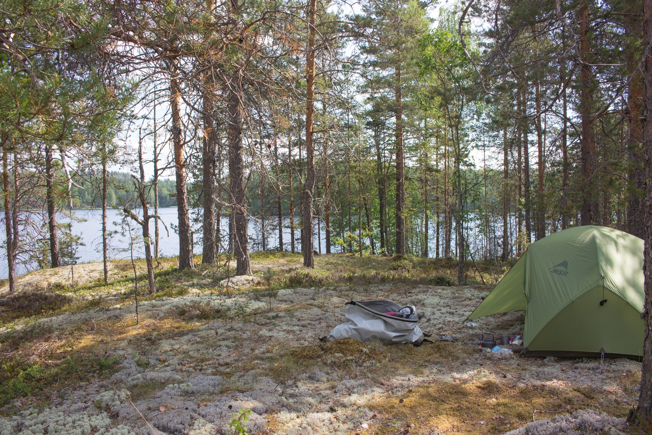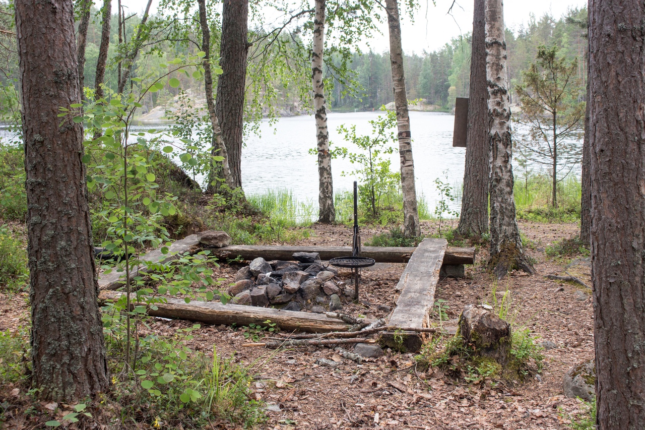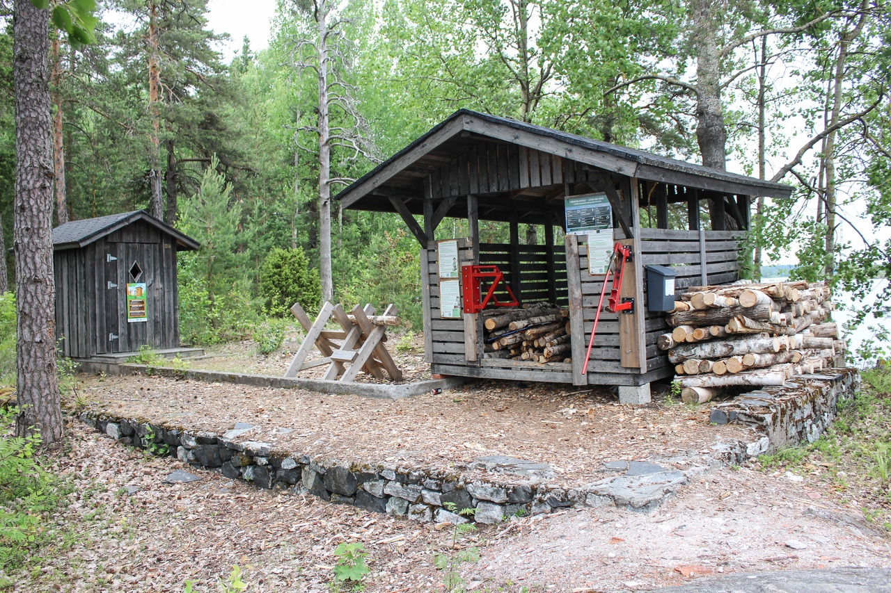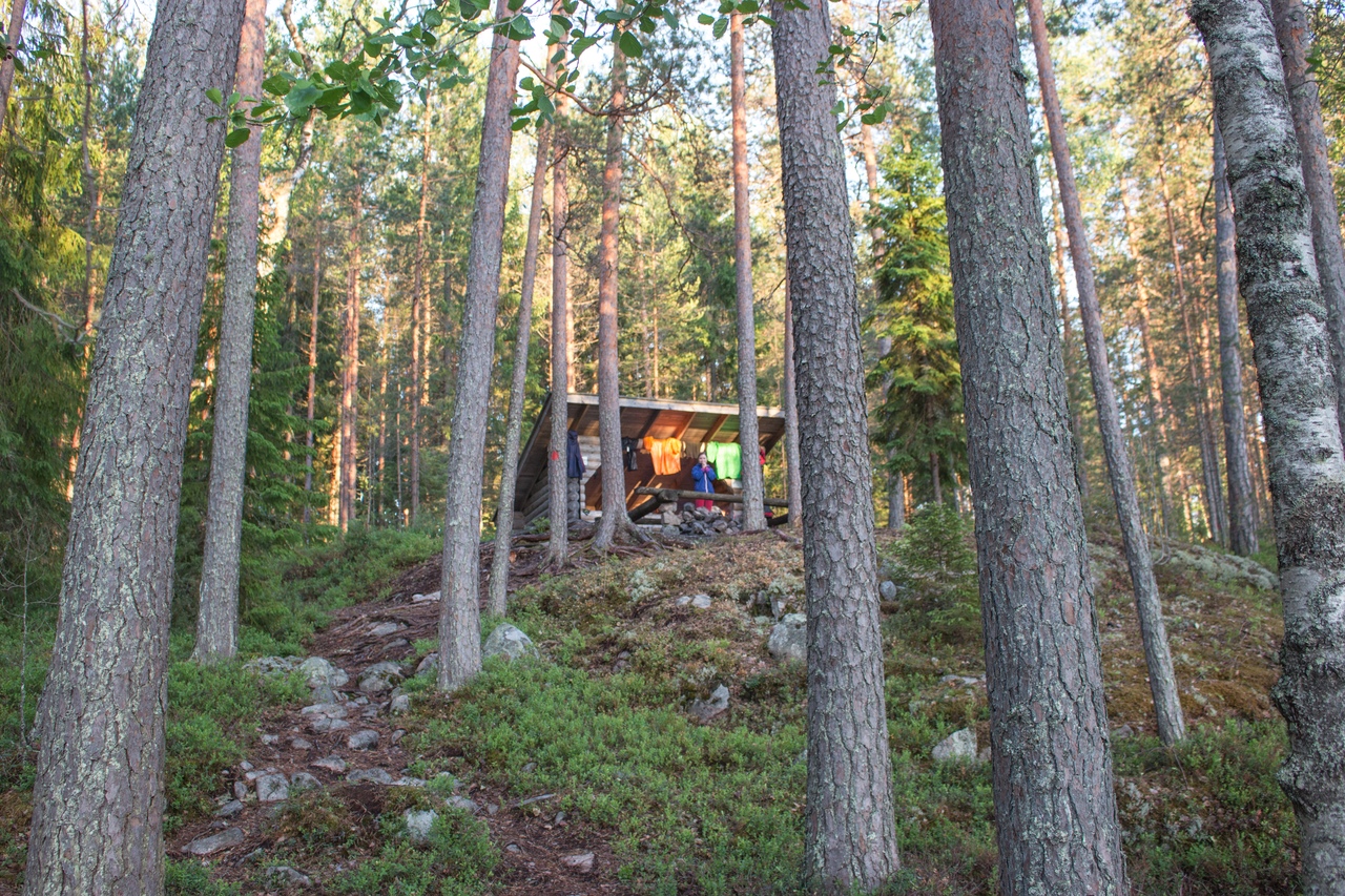 В итоге чуть дальше по маршруту на полуостровке Васиккасаари (Телячий остров) случайно обнаружили навес, не обозначенный на карте. Вот там и решили переночевать.
