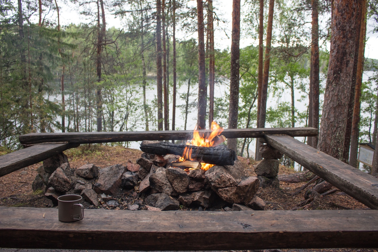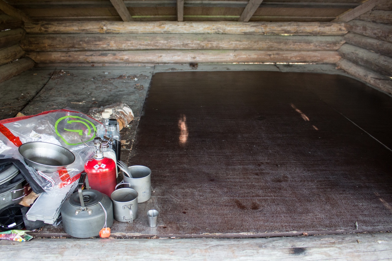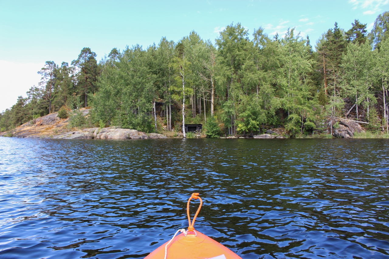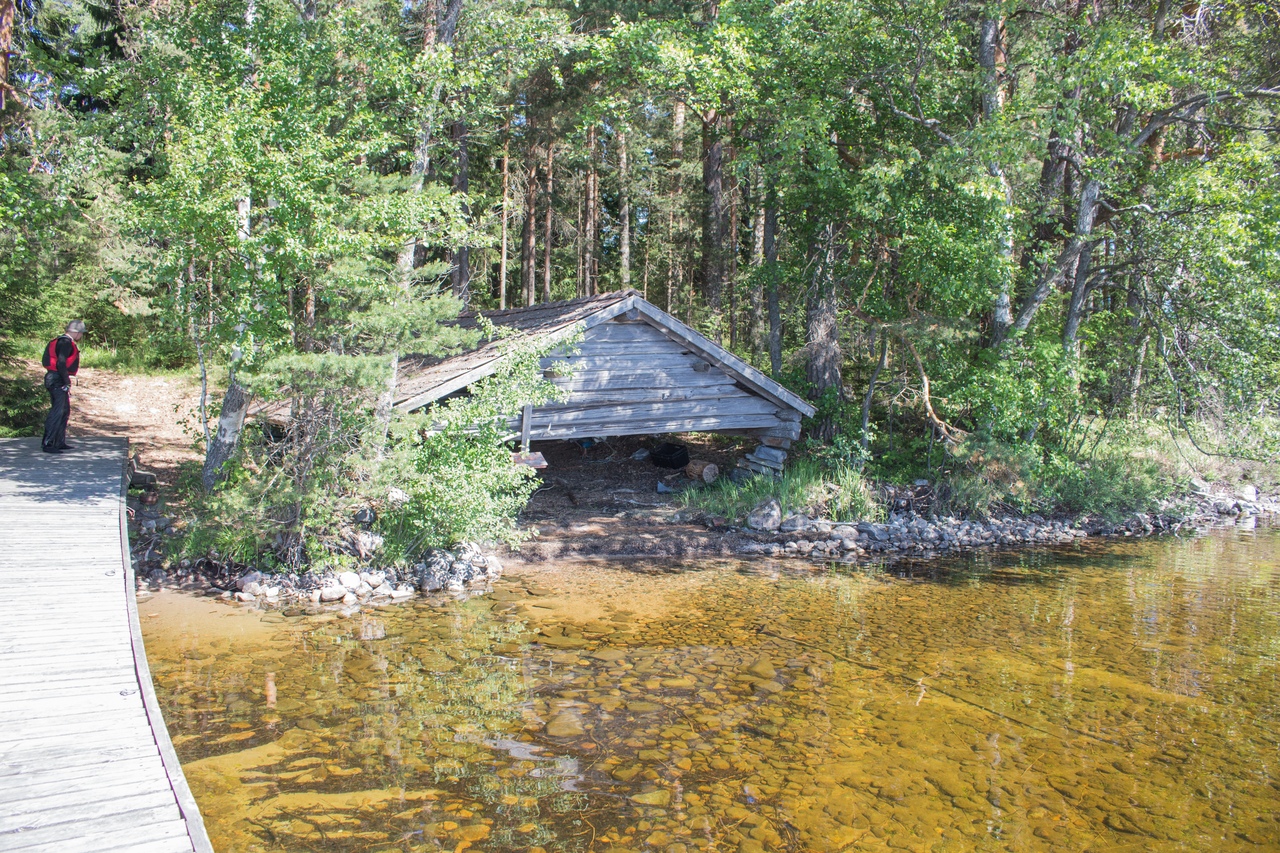 В итоге чуть дальше по маршруту на полуостровке Васиккасаари (Телячий остров) случайно обнаружили навес, не обозначенный на карте. Вот там и решили переночевать.