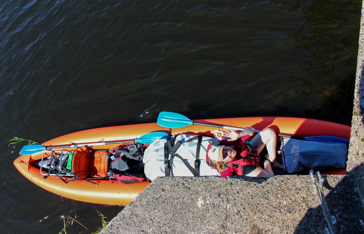 Мы доплыли до причала, просушили и свернули лодку. Большую часть