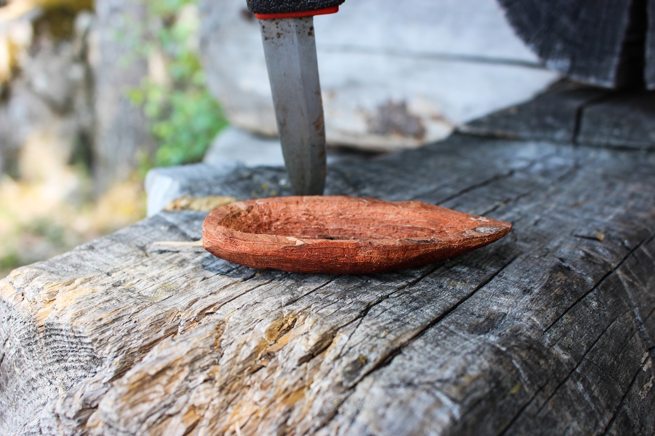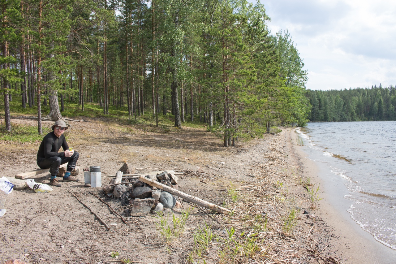 Утро началось с тоскливого осознания, что поход заканчивается. Особо не торопились, т.к. времени у нас вагон. Я даже вспомнил детство и выстрогал лодочку из найденного у лааву куска сосновой коры. Там её и оставили.