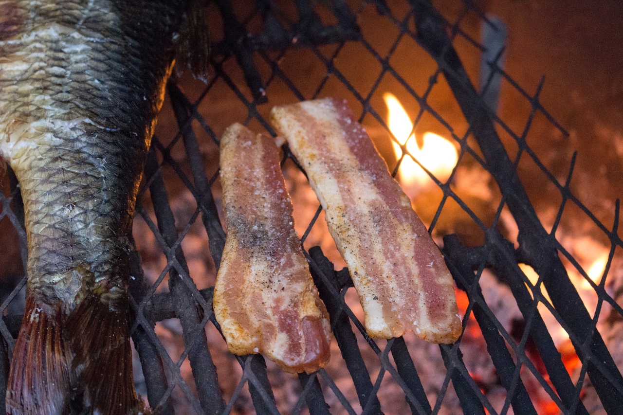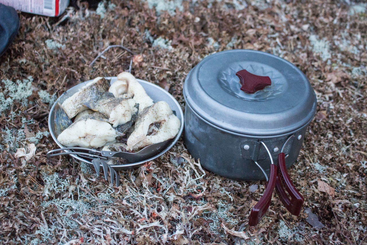 Женя пошёл рыбачить, я занялась приготовлением