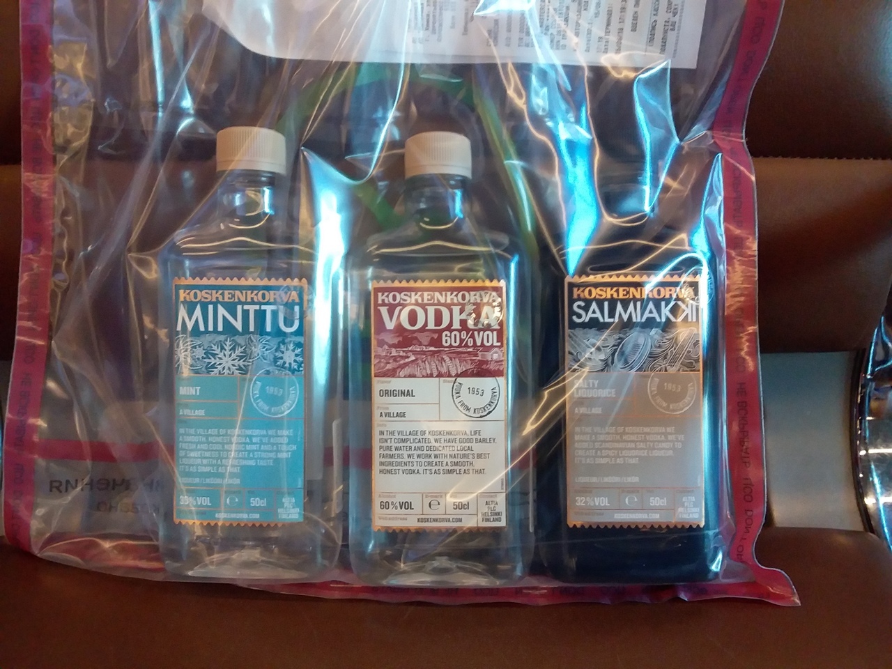 На фото по порядку: мятный ликёр, водка крепостью 60% (которая при этом оказалась очень мягкой на вкус), лакричный солёный (!) ликёр. Последний стал моей новой финской любовью, отодвинув на второй план солёные лакричные конфеты.
